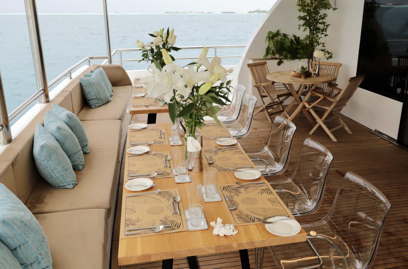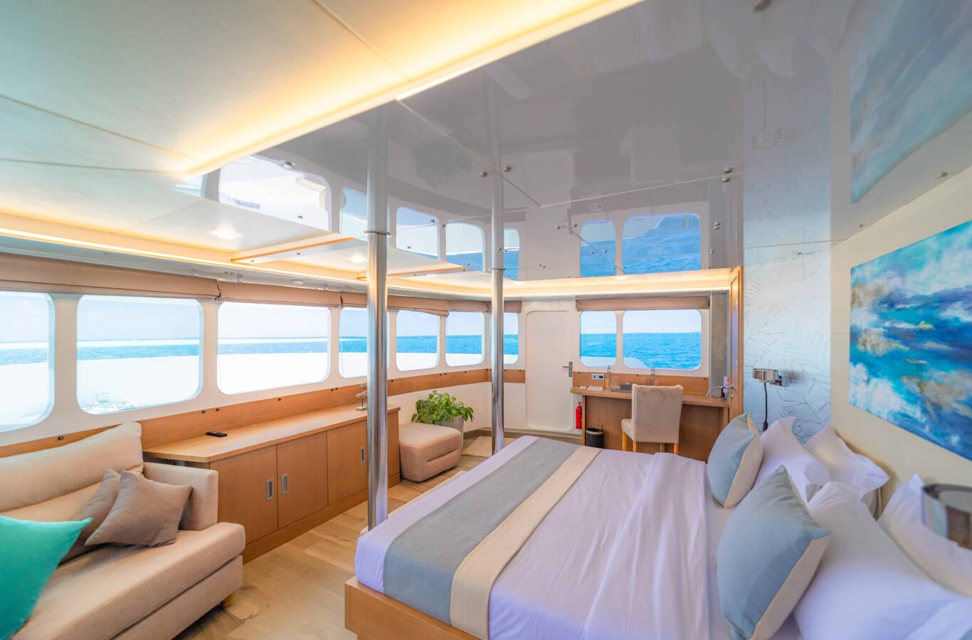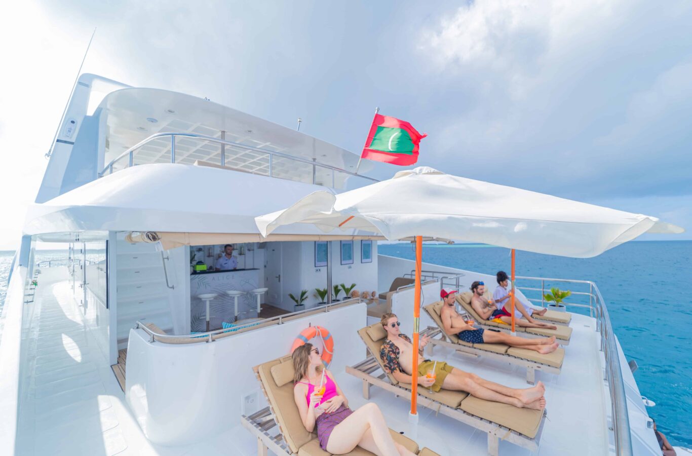 An excellent choice for divers keen to explore the Maldives with a dedicated dive team on board.Β International crew with local knowledge and superb shoreside assistance. Well set up for too for those that want to enjoy excellent watersports toys as well as on board golf and karaoke!