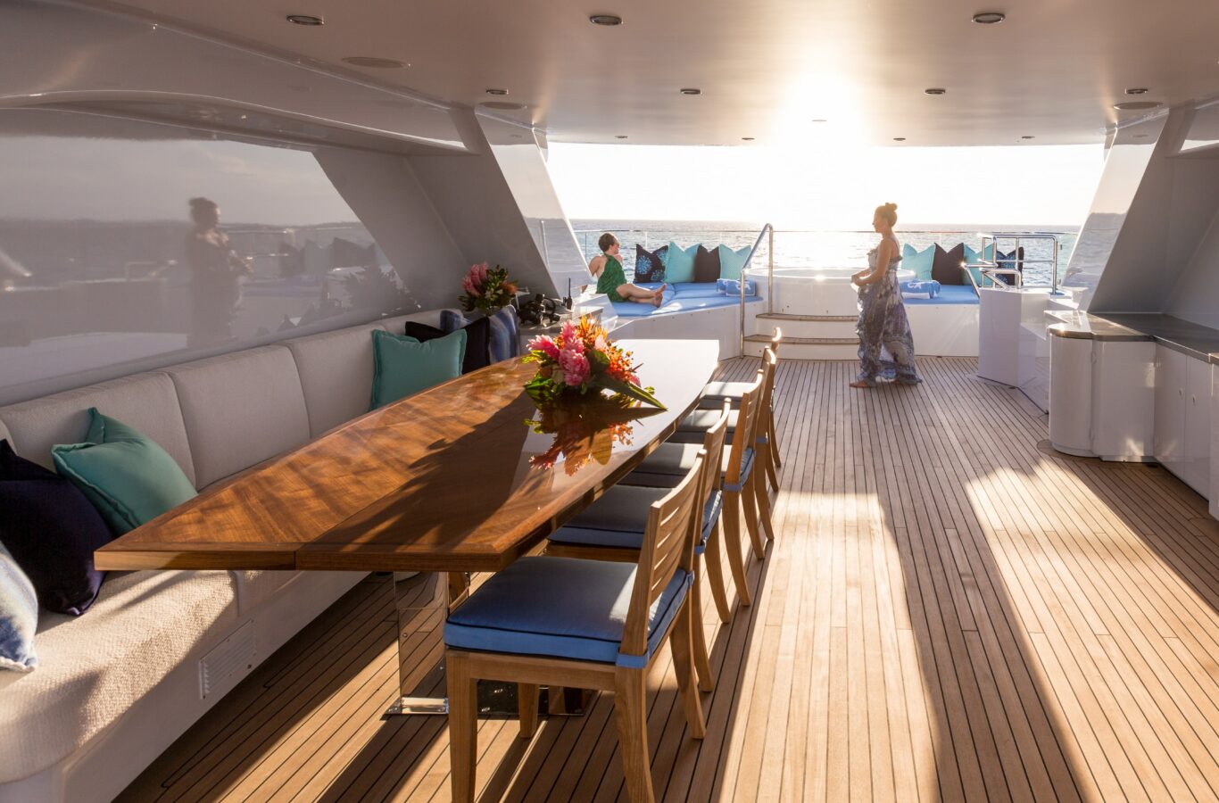 Built at Royal Denship with a Claudette Bonville interior, BACA provides an excellent charter platform in French Polynesia.Β Accommodation for 10 guests, great selection of watertoys, beach club and huge sundeck, the yacht offers far more than her size suggests.