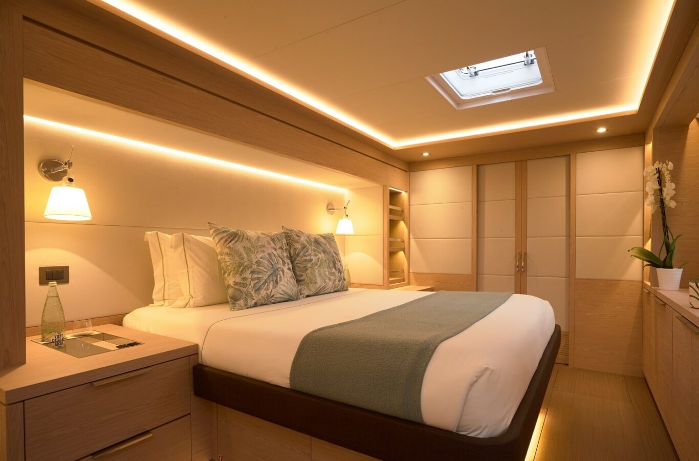 One of my favourites for any type of group, particularly as the crew are outstanding! KAJIKIA has a wonderful feeling of space and a really bright, light modern interior with staterooms that are a great size.Β The balcony opening straight onto the sea is gorgeous and they have tons of watertoys to keep all ranges of enthusiasts occupied!