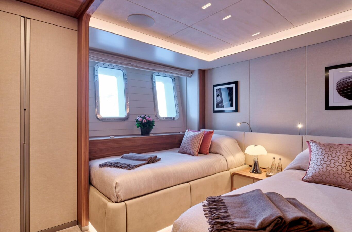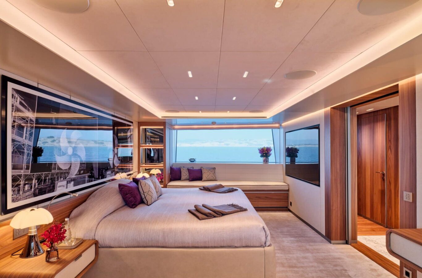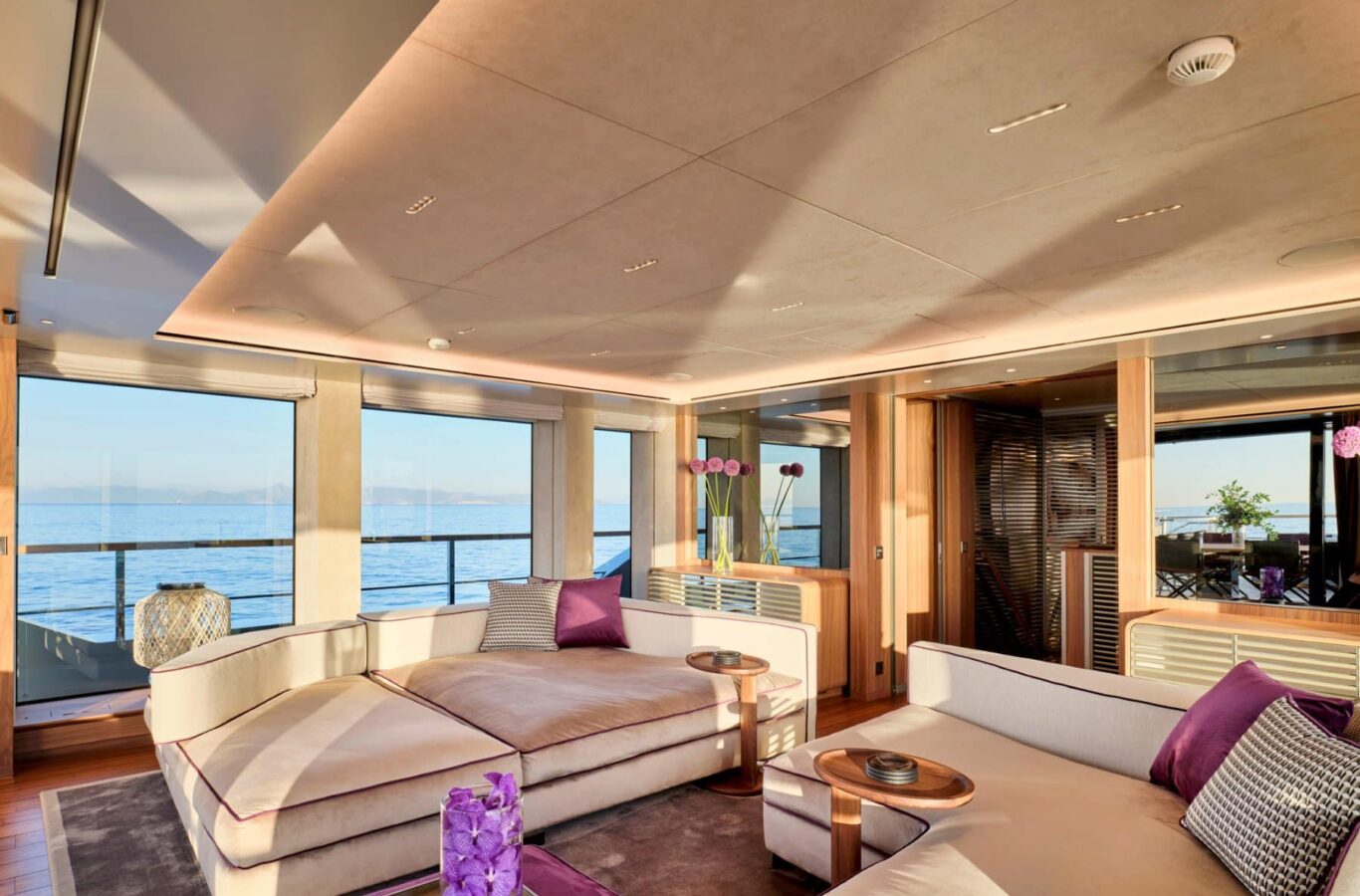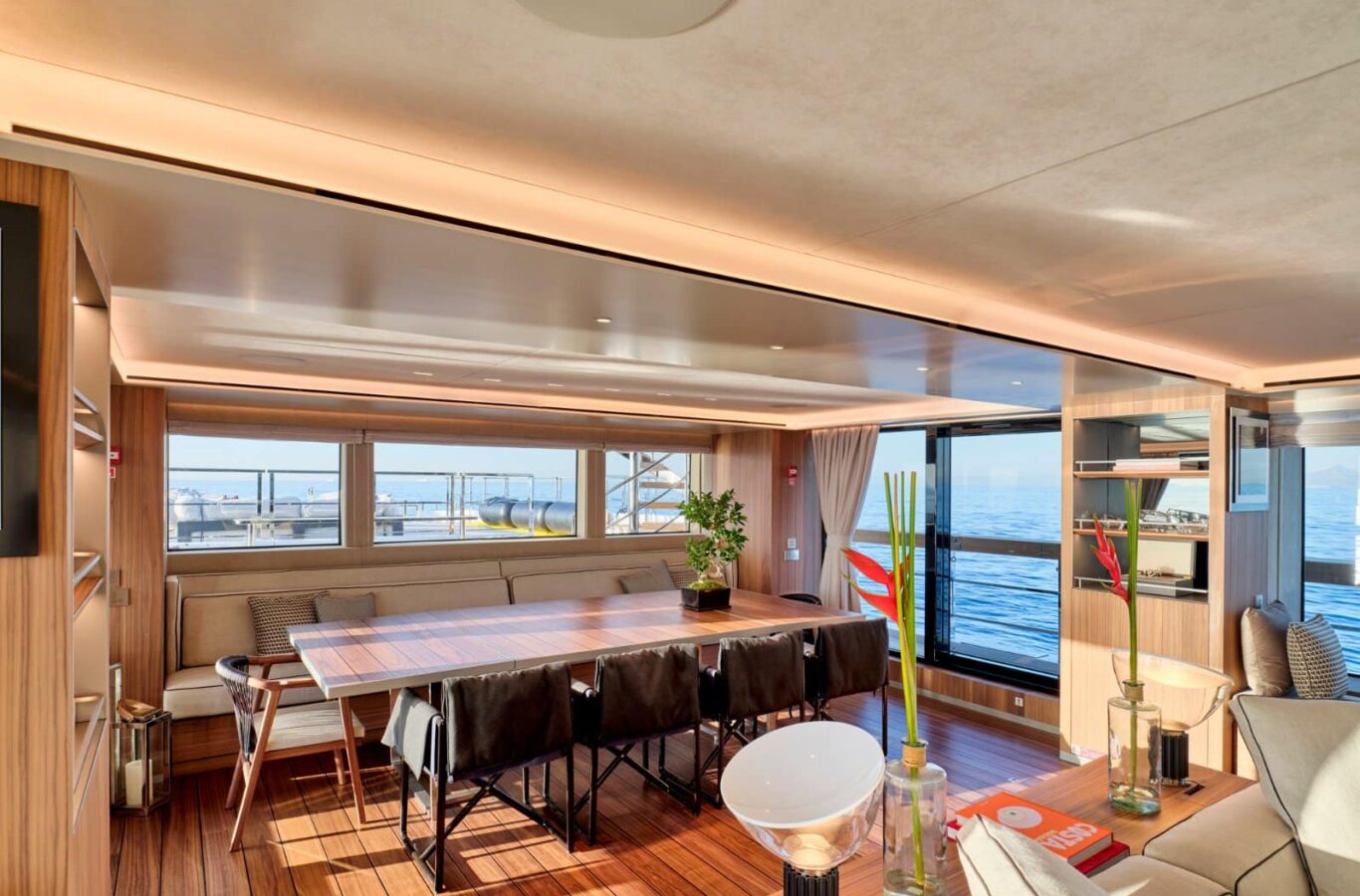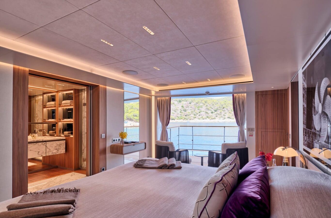 - Deck space and volume comparable to a 55-60m yacht, due to the generous beam