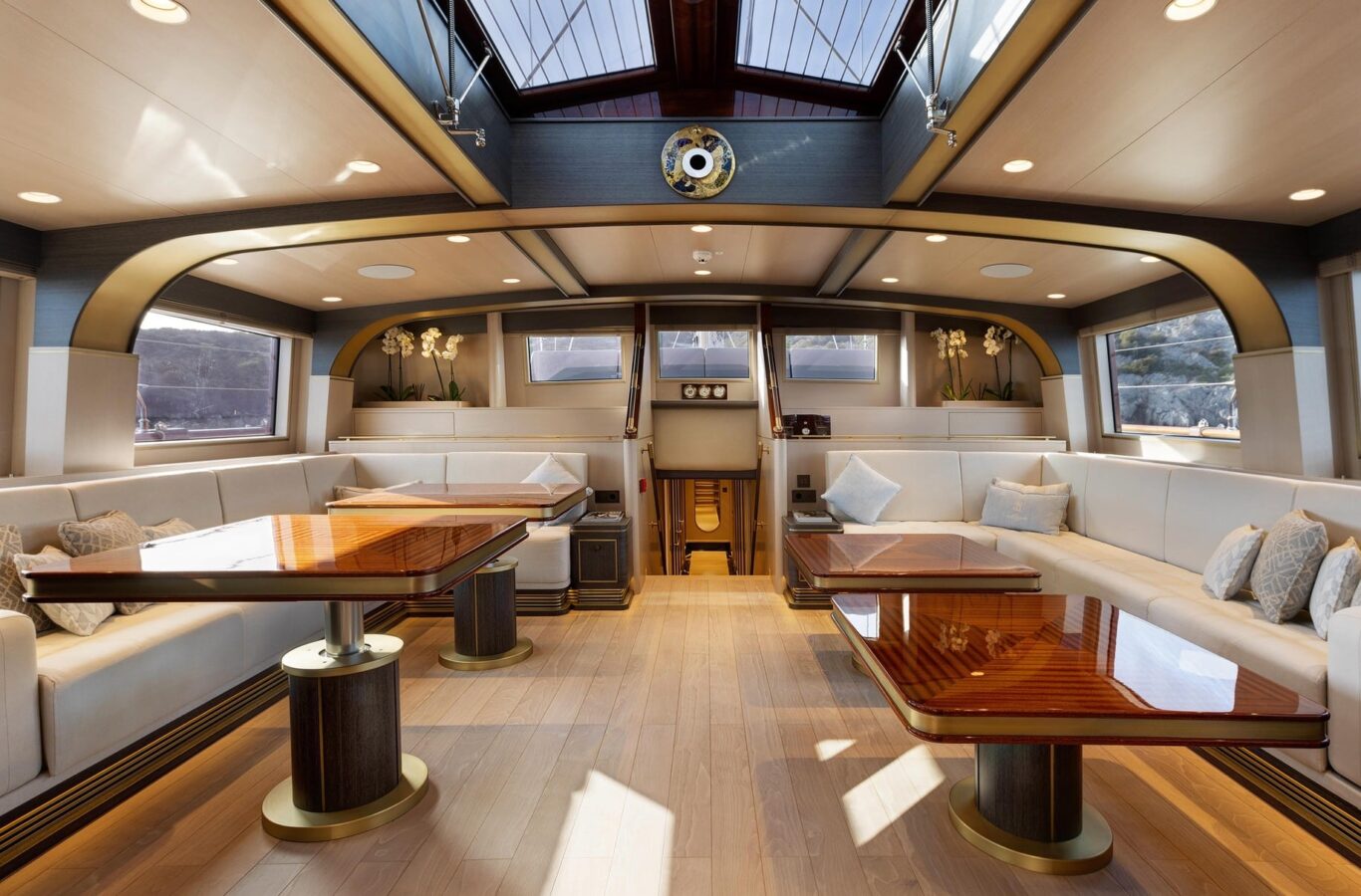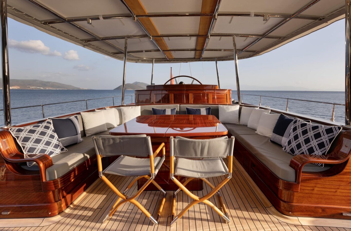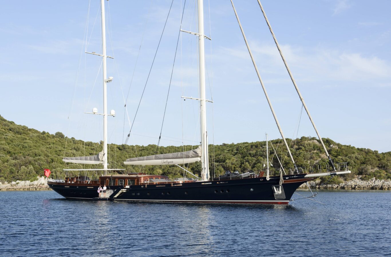 We are excited to welcome SALLYNA to the Yomira collection.ย Su Marine have created a yacht with a graceful profile to draw admiring looks in any bay. The interior exudes a calming ambiance with thoughtfully designed furniture and a distinctive lantern-style skylight bathing the main salon in natural light, while the expansive deck areas are thoughtfully designed for both relaxation and socialising with plenty of shade under the bimini for those hot summer days.ย Constructed with a steel hull, the design ensures a smooth and stable sailing experience, and unusually for a sailing yacht the generous toy inventory includes a jet ski which is a bonus.ย This is a wonderful choice for both the sailing connoisseur and novice yachtsman to explore the East Mediterranean in comfort.